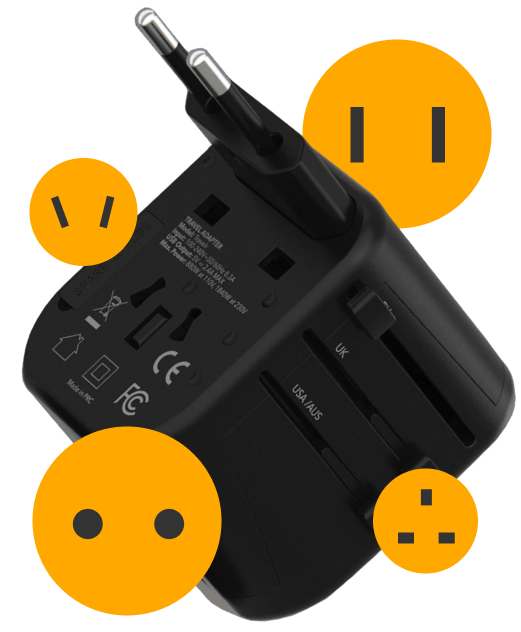 No matter what country you plan to explore next, our Universal Travel Adapter will be there with you.